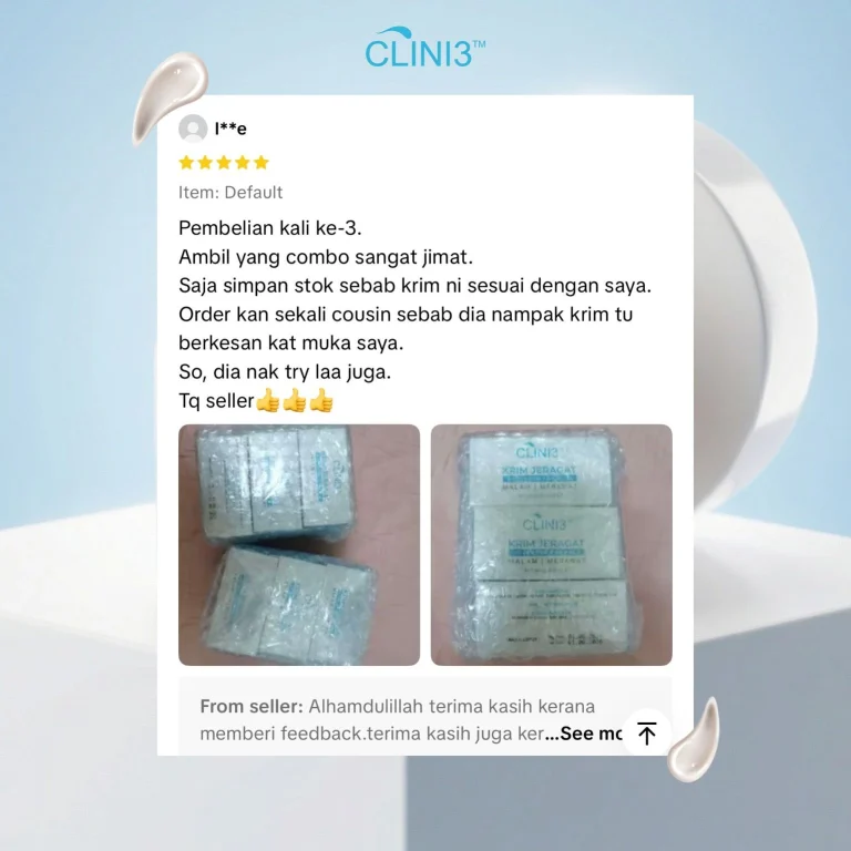 Clini3 Krim Jeragat adalah hasil kajian farmaseutikal dan klinikal untuk memberikan hasil terbaik