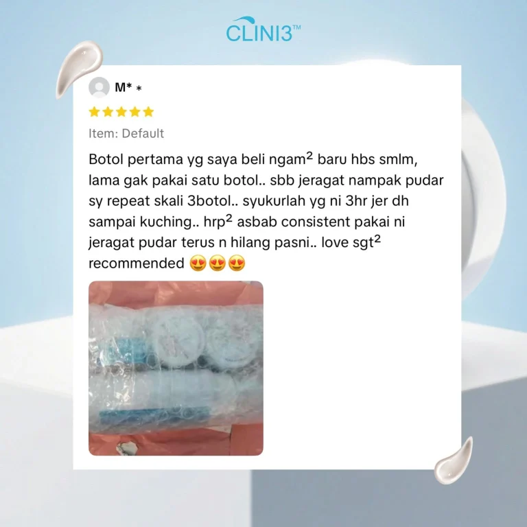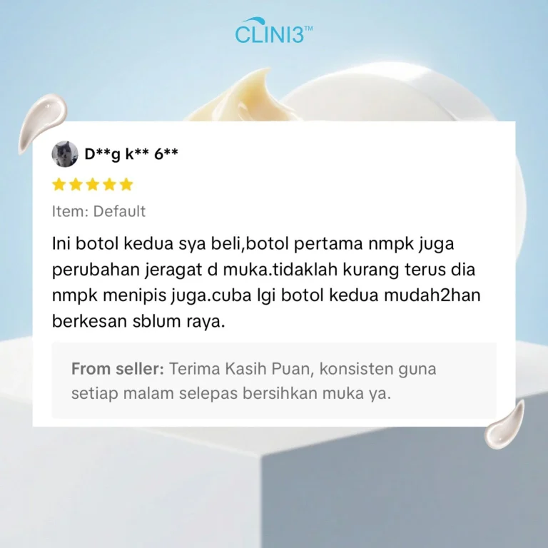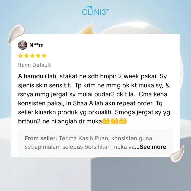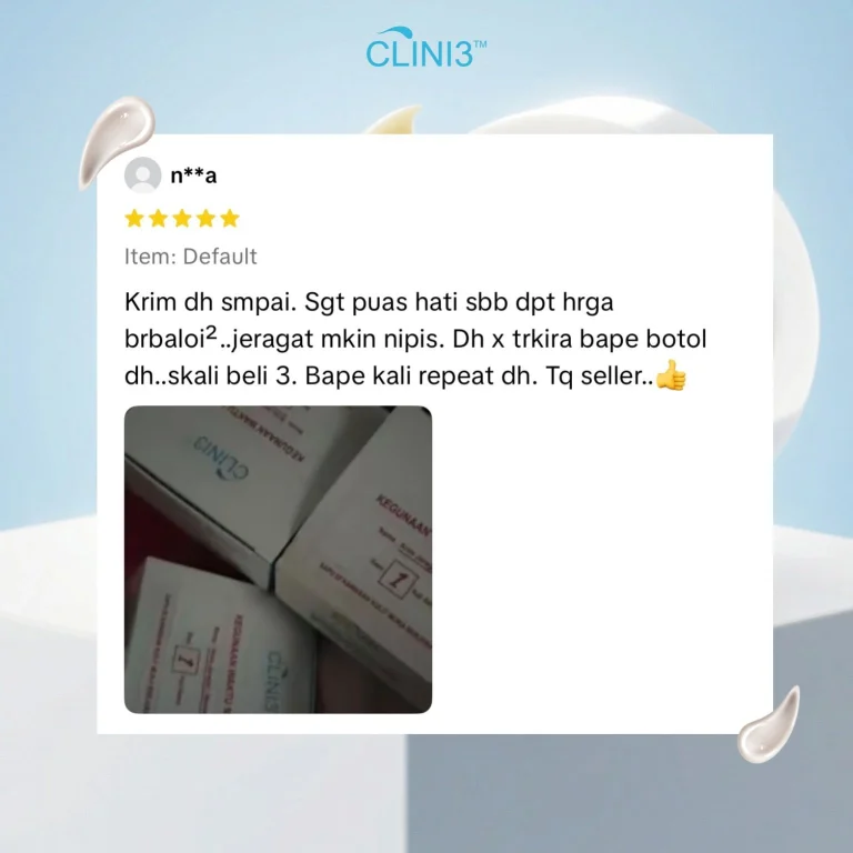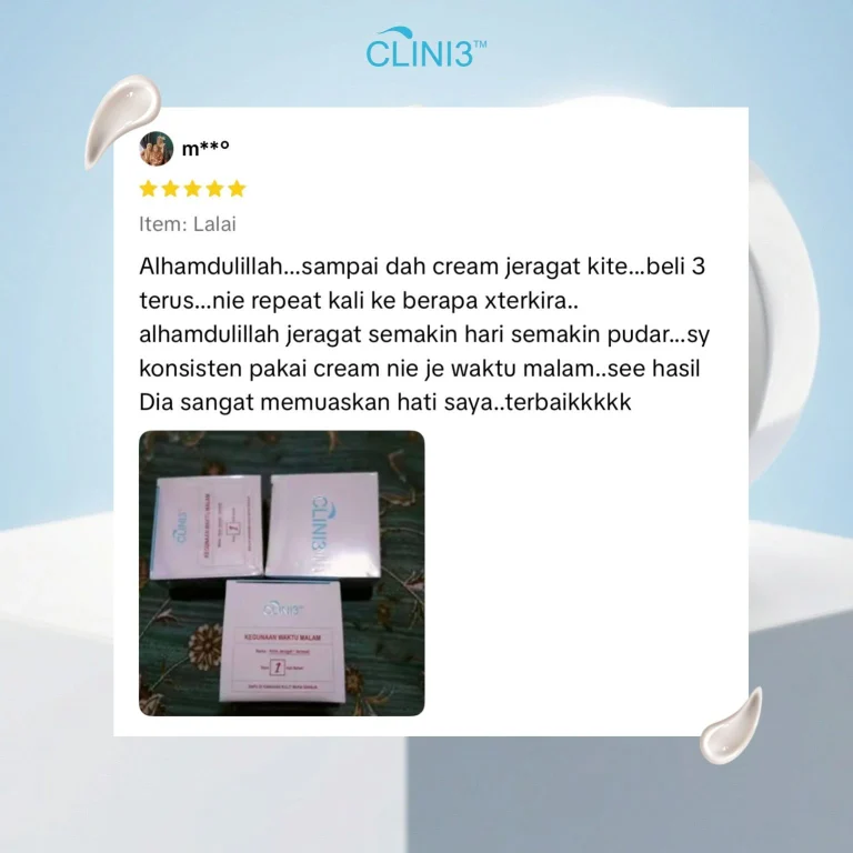 Clini3 Krim Jeragat Sangat Lembut, Tidak Melekit, Mudah Meresap, Berkesan Merawat Jeragat Tanpa Menghakis Atau Menipiskan Kulit !!!