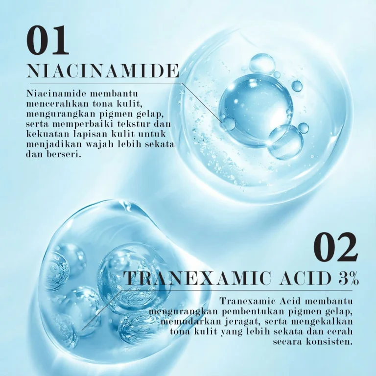 Niacinamide → cerahkan tompok gelap perlahan-lahan